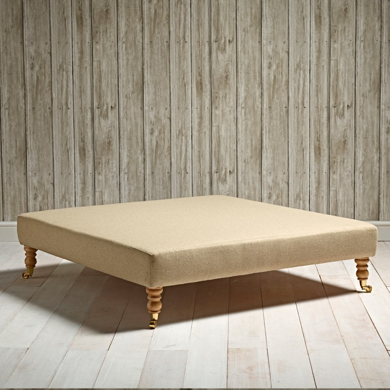 Arden Plain Top Footstool 122 x 122cm (48 x 48") Wool Plain Honey - 7ins Castor Leg Natural