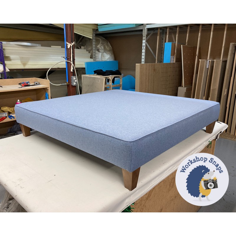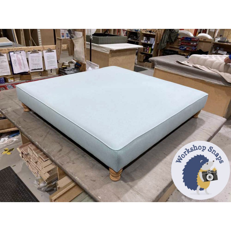 Arden Plain Top Footstool 122 x 122cm (48 x 48") Textured Weave Duck Egg - Top Edge Piped - 5" Tapered Oak Leg 5317