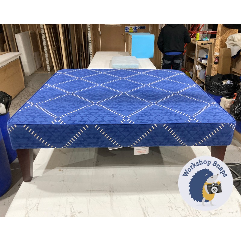 Arden Plain Top Footstool 122 x 122cm (48 x 48") Clarke & Clarke Navajo Totem Indigo - 9" Tapered Mahogany Leg 5083