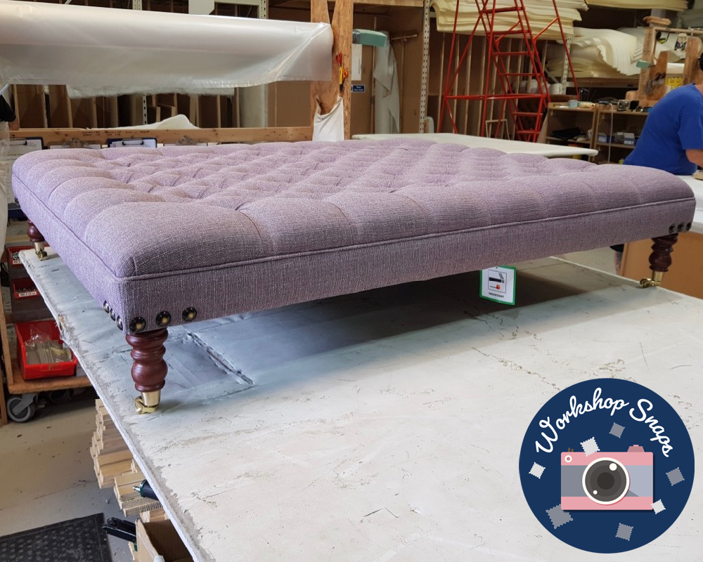 Here are some workshop snaps of how a deep buttoned top footstool looks without a border: