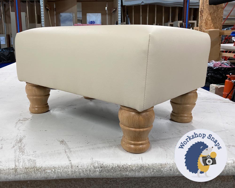 We offer a range of faux leather for your footstool and more colours are available, please ask.. Here is an inspiration gallery of some of the footstools using faux leather that we have made recently.