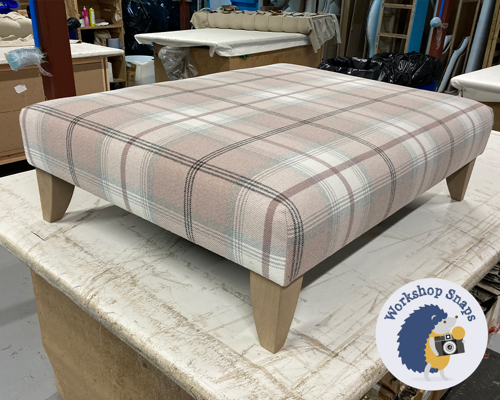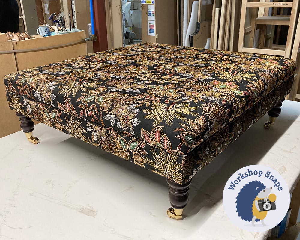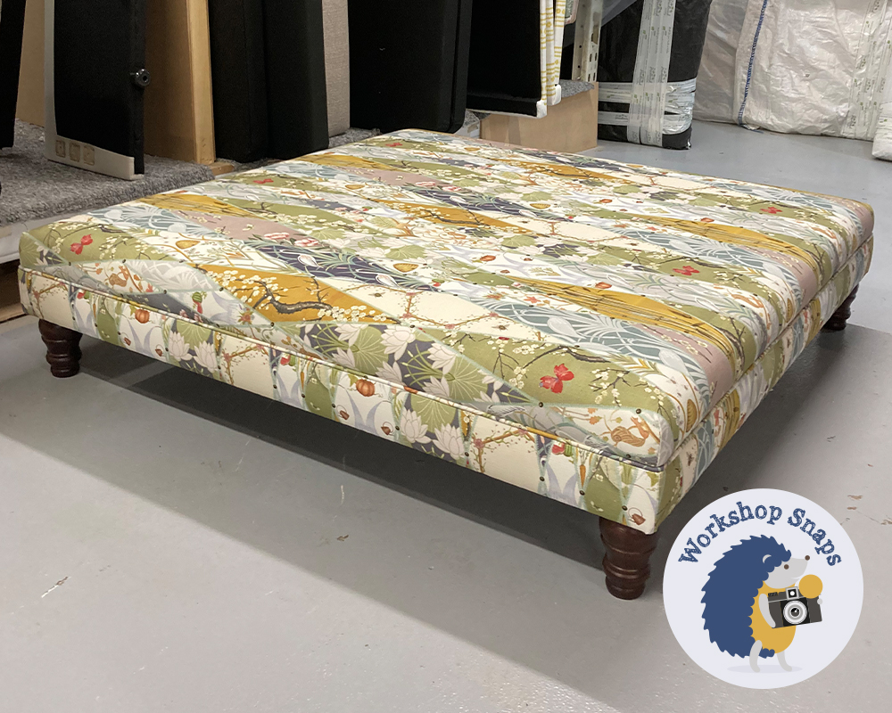 Here are some of our workshop snaps of footstools we have made in customers own fabric ranging from Fermoie, Lewis & Wood, Linwood Fabric and many more: