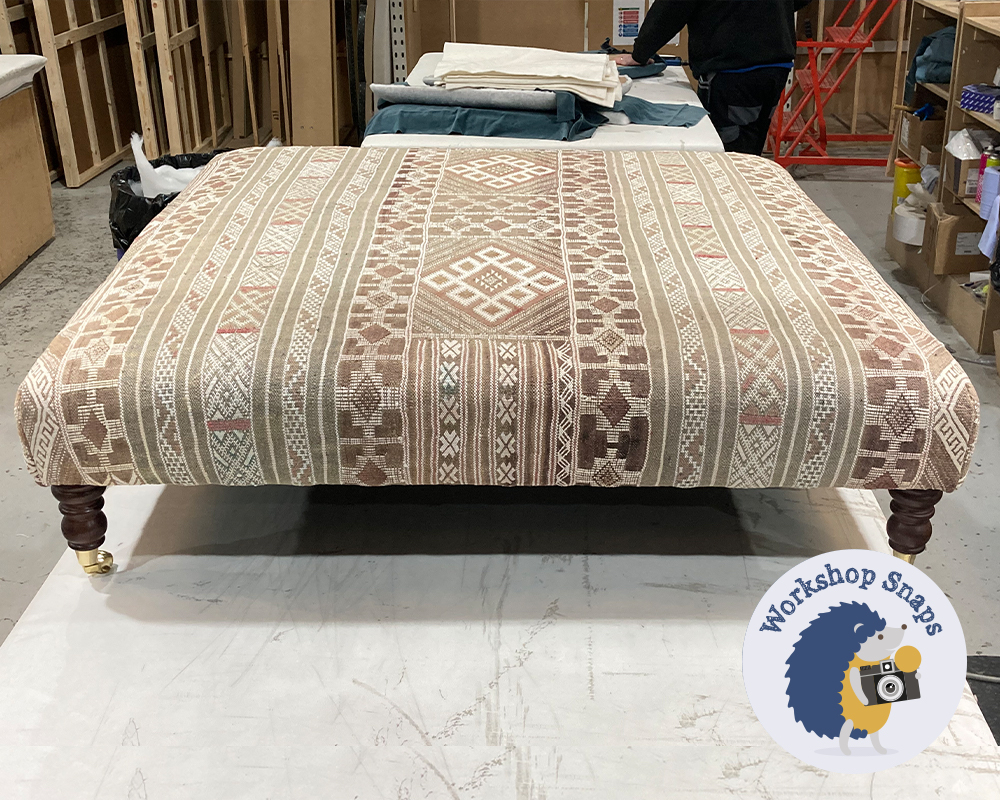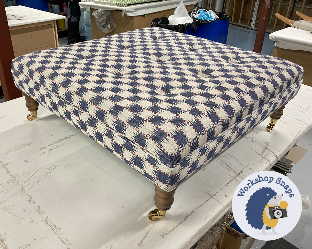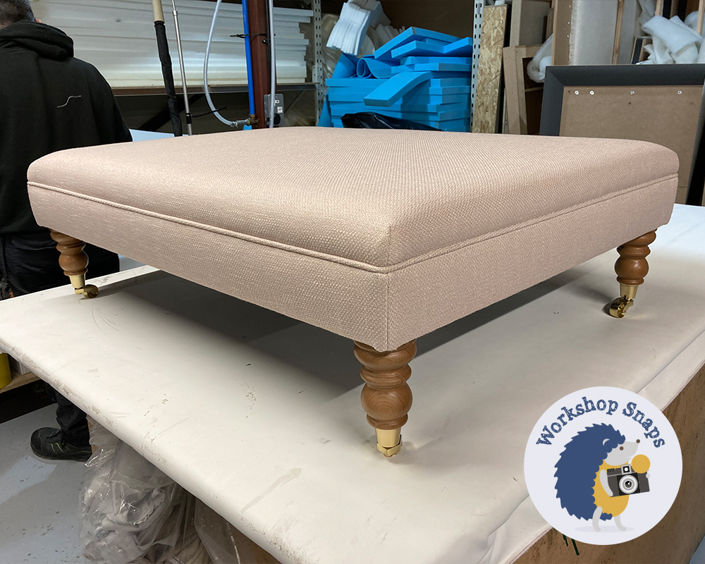 The footstool below has had an increase in the pad height from the standard 6 ins to the customer’s desired height.