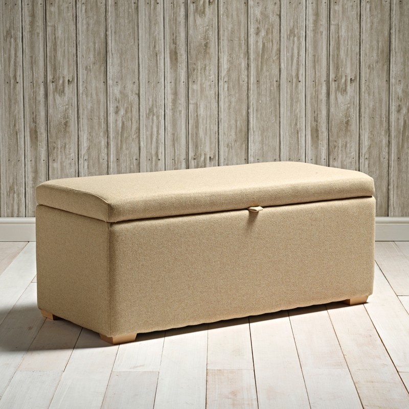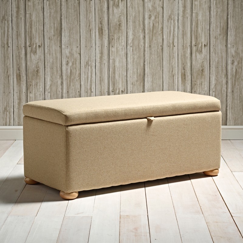Brechfa Plain Lid Storage Ottoman 119 x 53cm (47 x 21") Wool Plain Honey - 1.5ins Bun Feet Natural