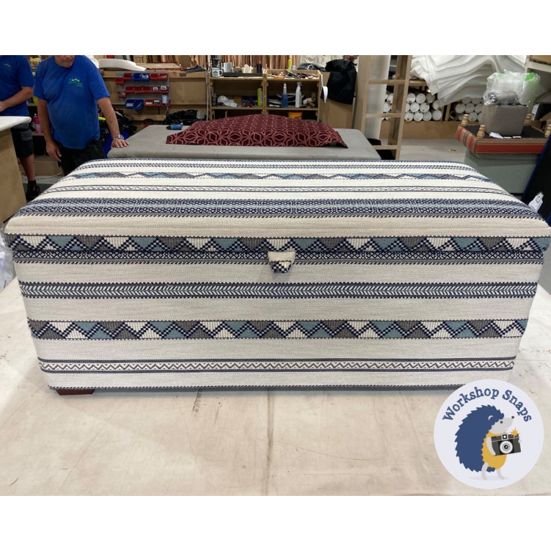 The Brechfa Plain Lid Storage Ottoman 119 x 53cm (47 x 21") is handmade to order. Begin building your large storage stool by selecting from our wide range of fabrics (or provide your own), and a variety of leg options.