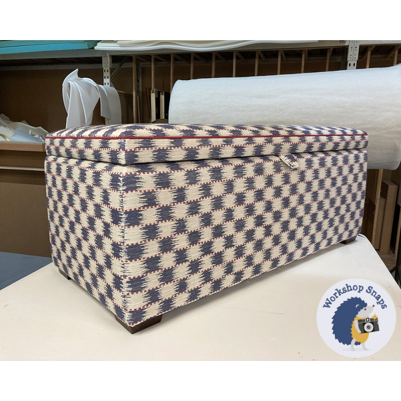 Brechfa Plain Lid Storage Ottoman 119 x 53cm (47 x 21") COM Titley & Marr Chequers Indigo - Piping in JBrown Coastal Raspberry - 1ins Dark Square Feet 237619
