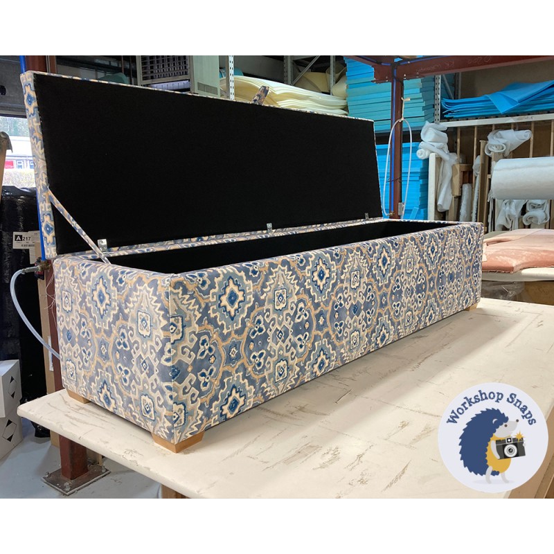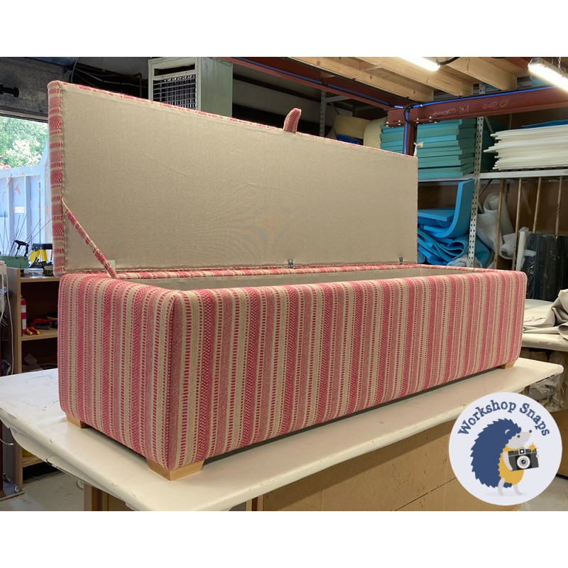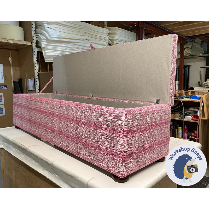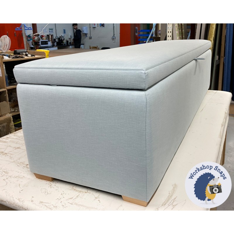 The Brechfa Plain Lid Storage Ottoman 183 x 53cm (72 x 21") is handmade to order. Begin customising your extra large storage stool by selecting from our wide range of fabrics (or provide your own), and a variety of leg options.