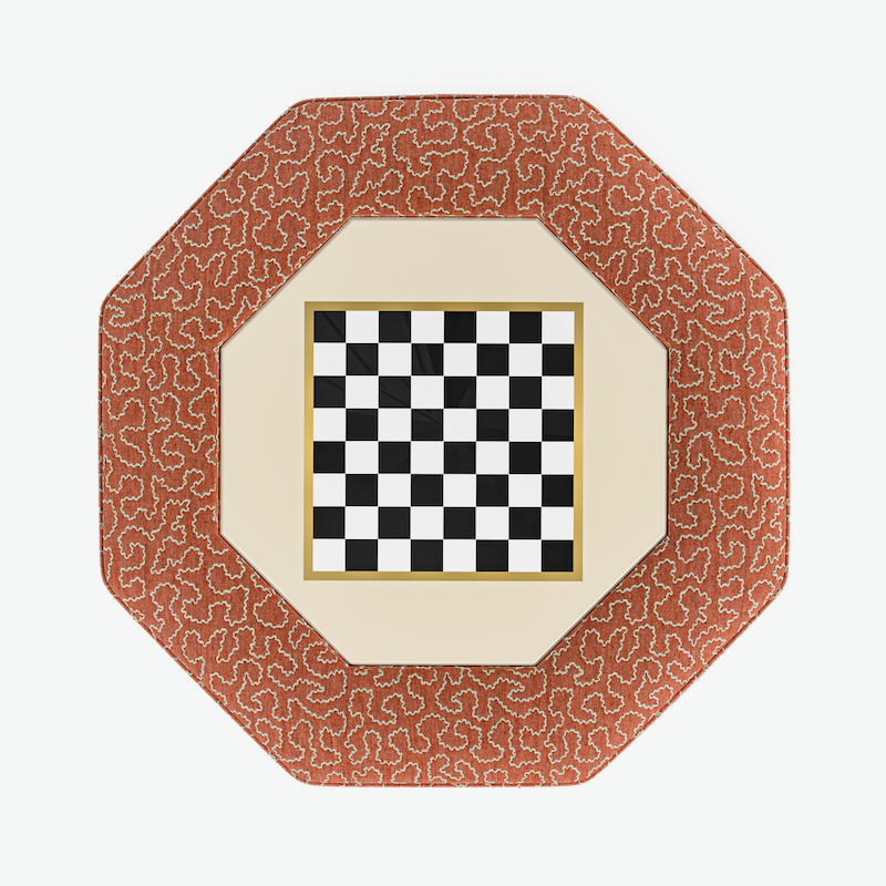 An elegant eight-sided octagonal ottoman with a chess board inlay.