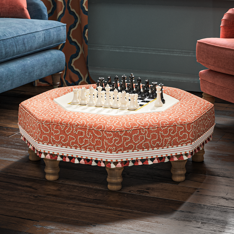 A fusion of a square and circular ottoman, the Delamere octagon oozes effortless character, whilst a chess board lid insert is perfect for chess enthusiasts.