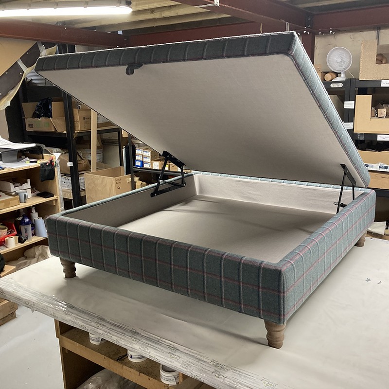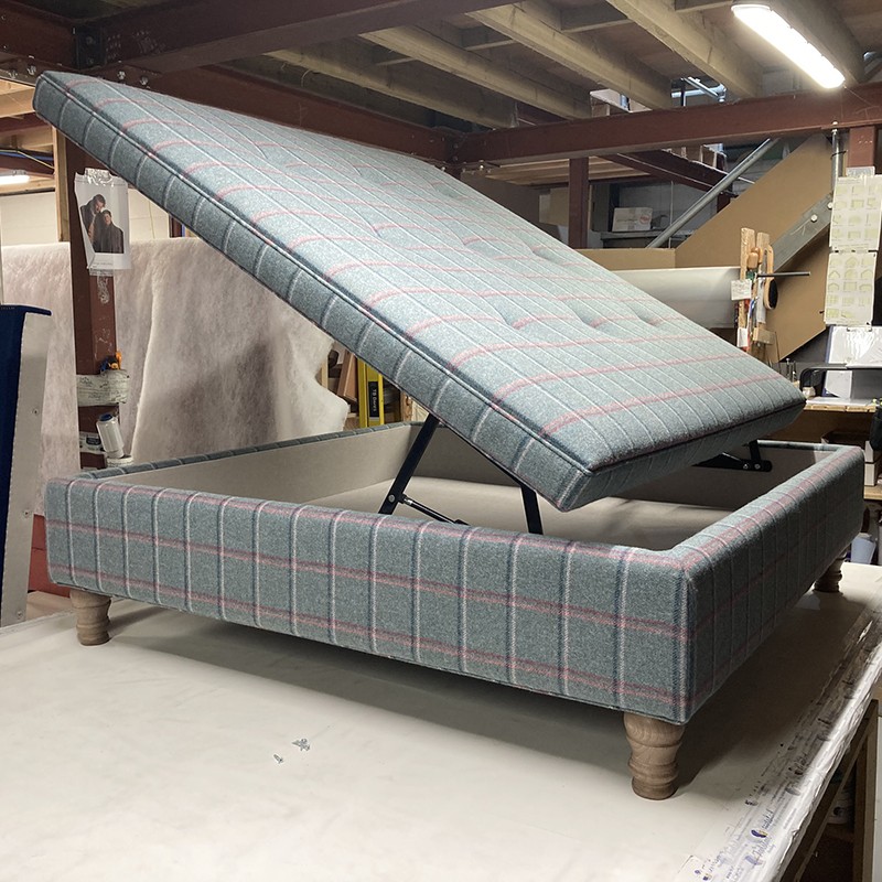Our super chic fully upholstered Storage Footstools boast a sizeable full or shallow depth interior space for blankets, board games, embroidery or anything you would like to hide but also have conveniently to hand.