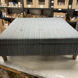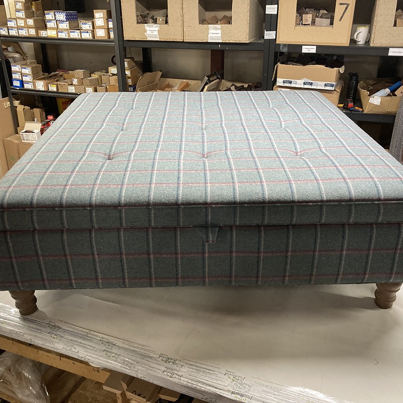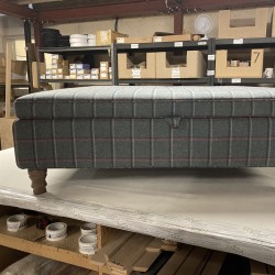 A striking and useful shallow buttoned storage footstool in a luxury Abraham Moon Wool.