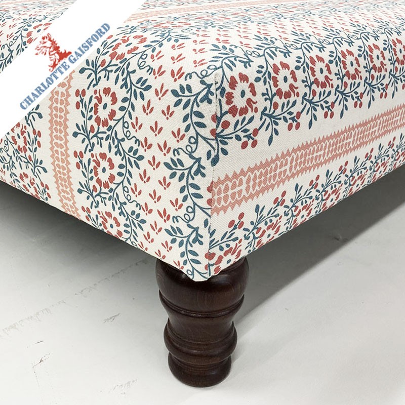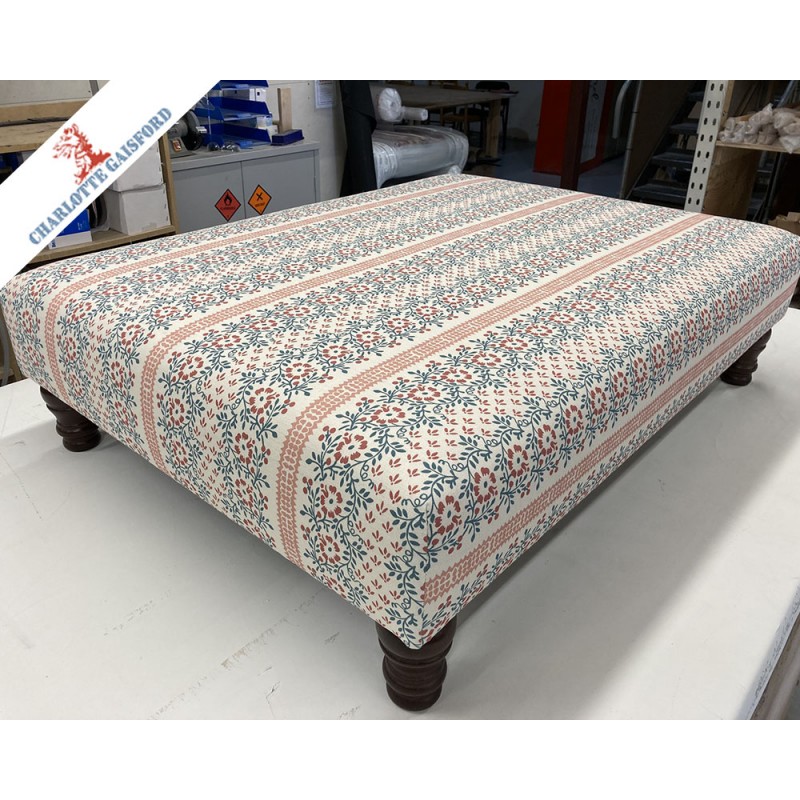 This 30ins x 40 ins Plain Top Arden Footstool has been expertly upholstered in Charlotte Gaisford Suzanne Red.