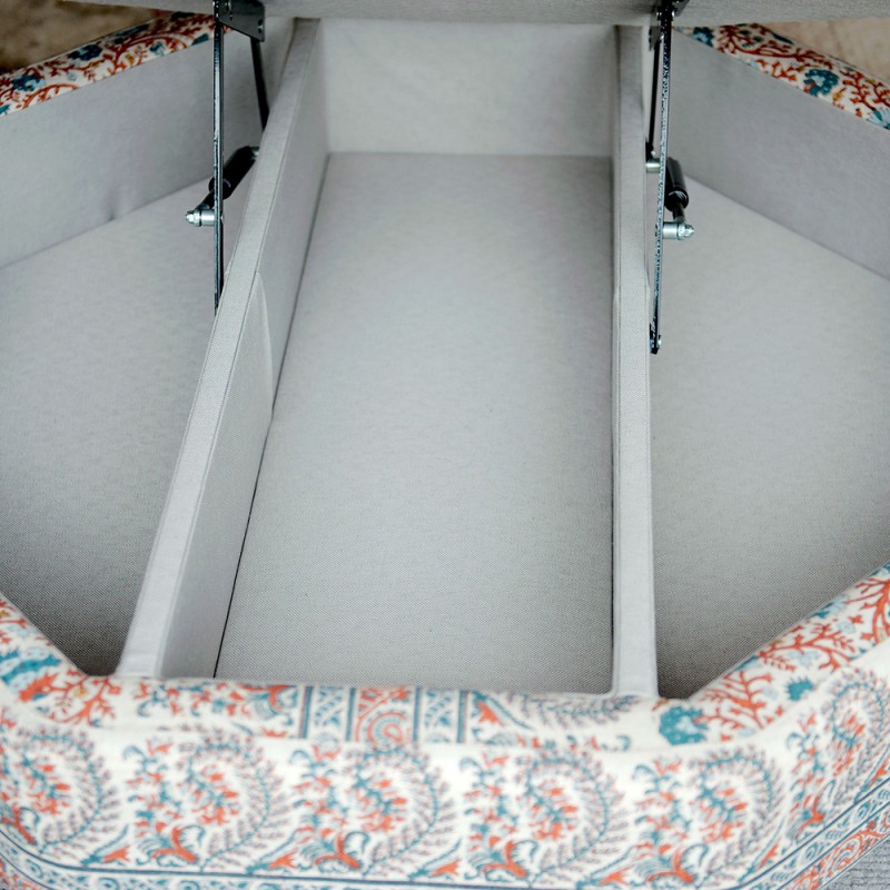A beautifully upholstered eight-sided octagon storage ottoman that ‘does more’. The Delamere offers a host of options for you to bespoke and suit your home and lifestyle.
