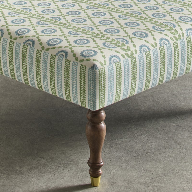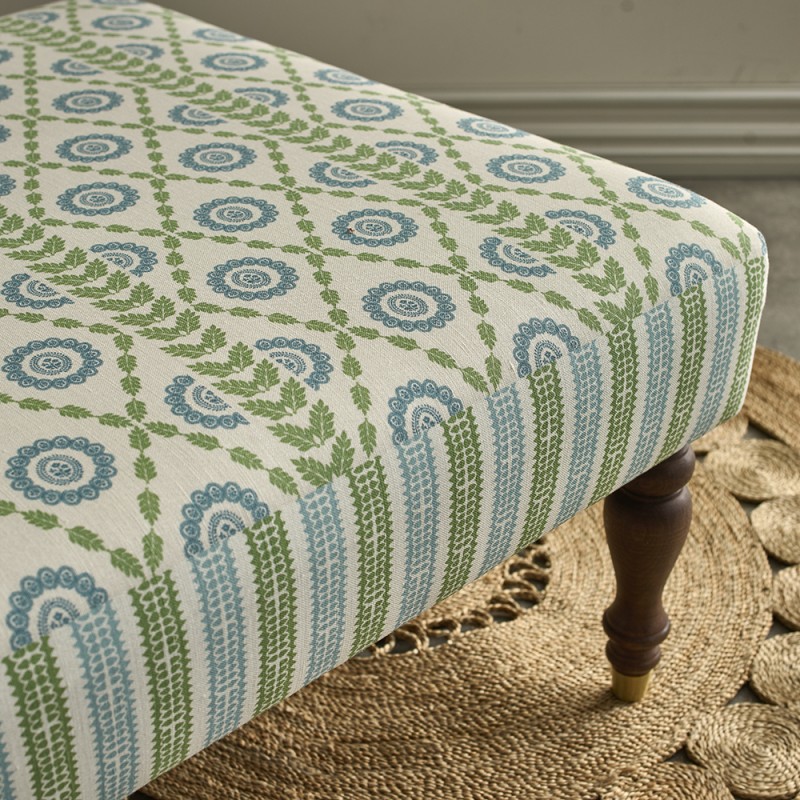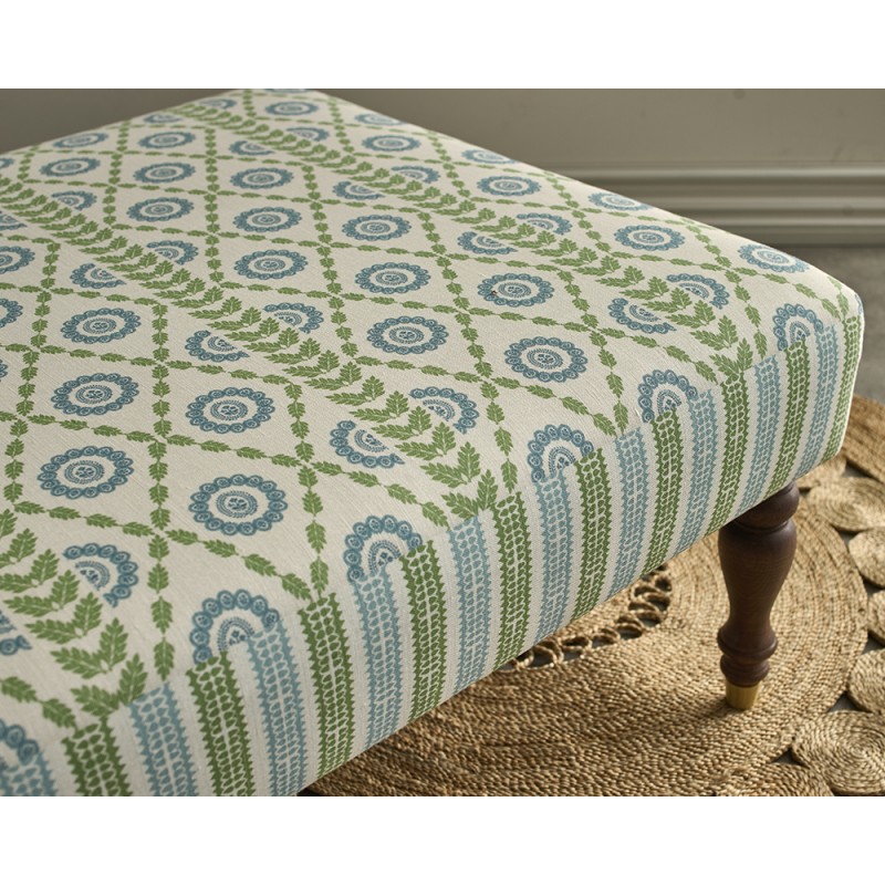 This 30ins x 40 ins Plain Top Arden Ottoman features Piccadilly Green and a border in Totty Green.