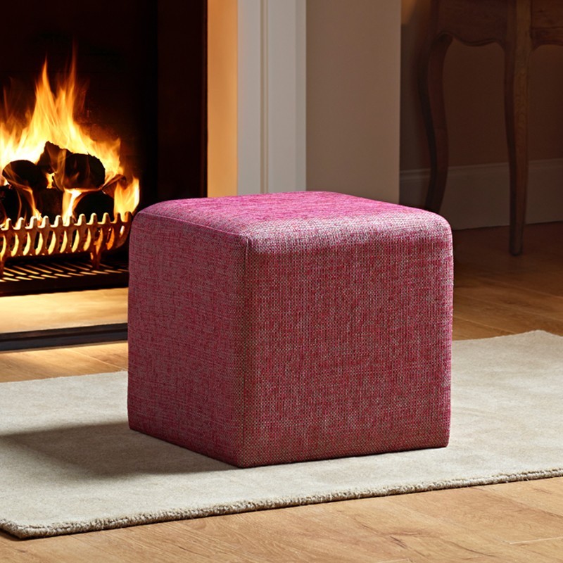 Dalby Cube Footstool 36 x 36cm (14 x 14") Basket Weave Fuchsia