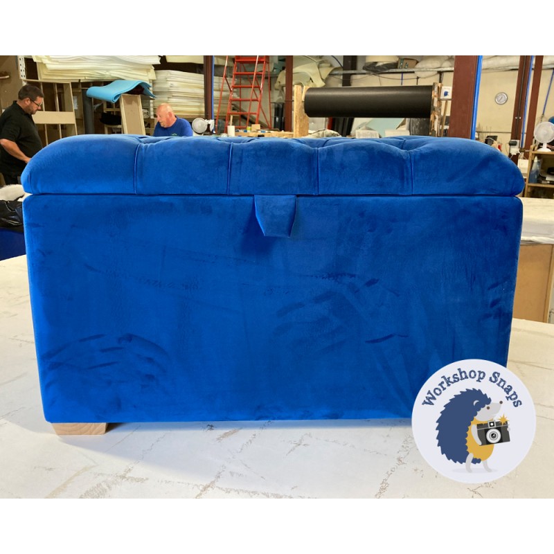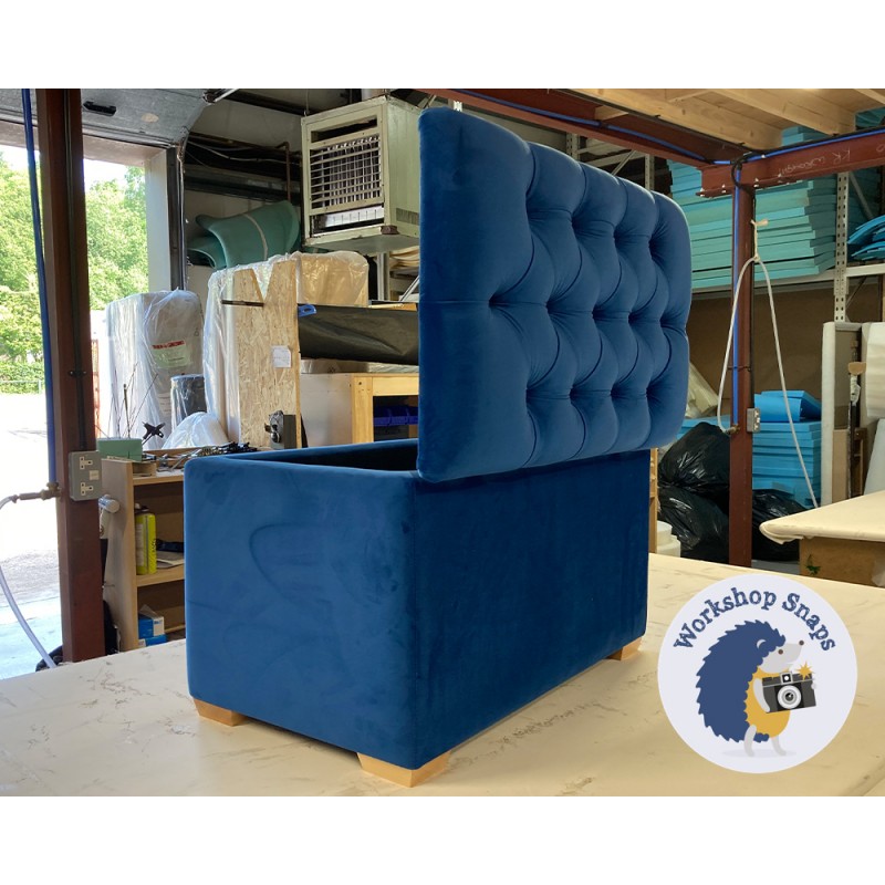 The Dean Deep Buttoned Lid Storage Ottoman 79 x 46cm (31 x 18") is handmade to order. Begin customising your small storage stool by selecting from our wide range of fabrics (or provide your own), and a variety of leg options.