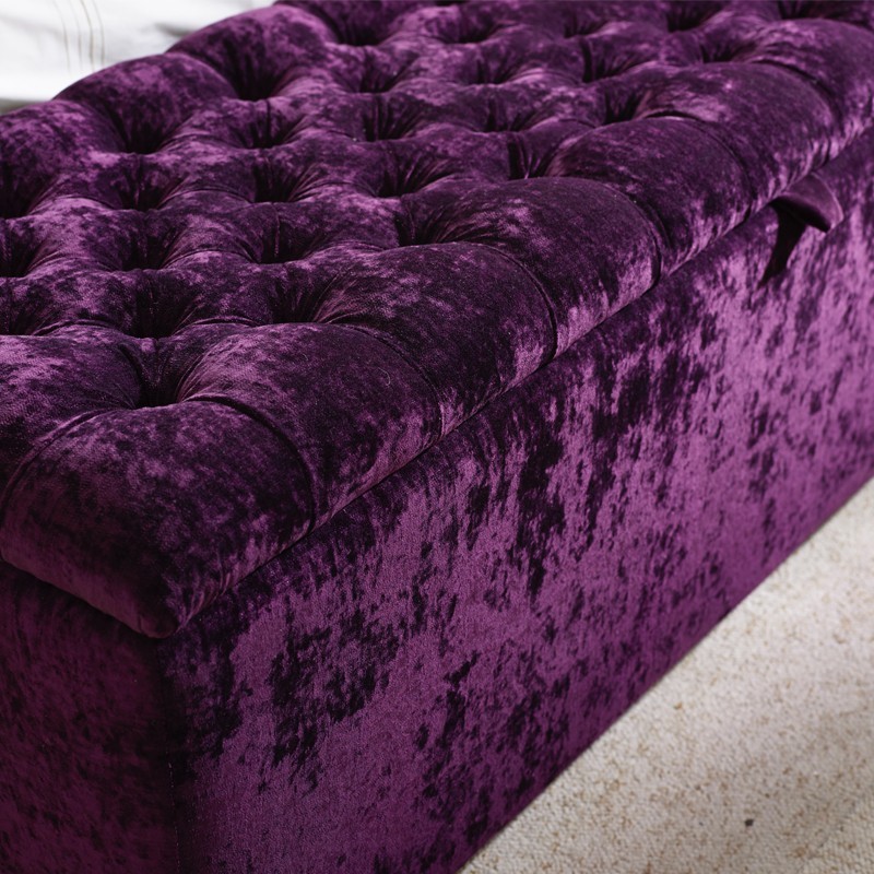Dean Deep Buttoned Lid Storage Ottoman 152 x 53cm (60 x 21") Crushed Velvet Aubergine