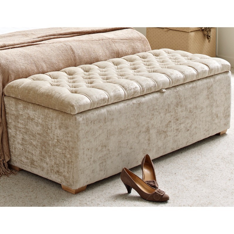 Dean Deep Buttoned Lid Storage Ottoman 152 x 53cm (60 x 21") Crushed Velvet Beige - 1ins Square Foot Natural
