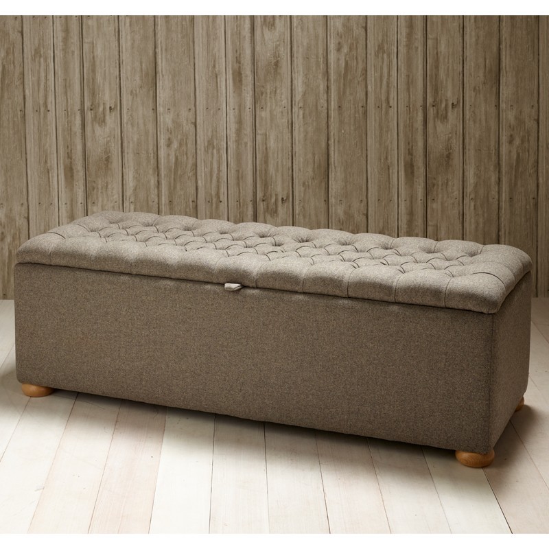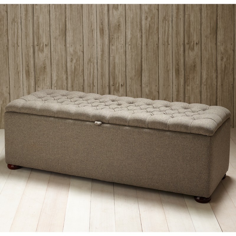 Dean Deep Buttoned Lid Storage Ottoman 152 x 53cm (60 x 21") Wool Plain Mushroom - 1.5ins Dark Bun Feet