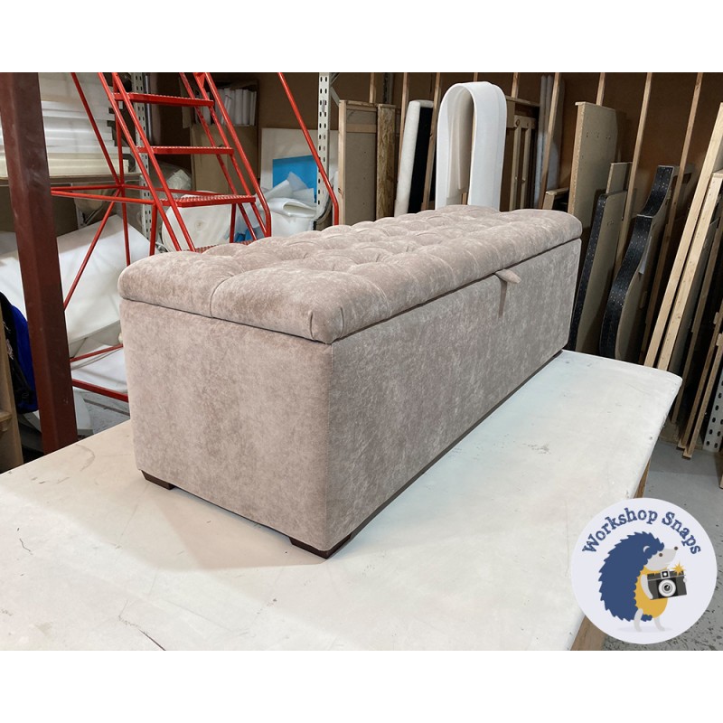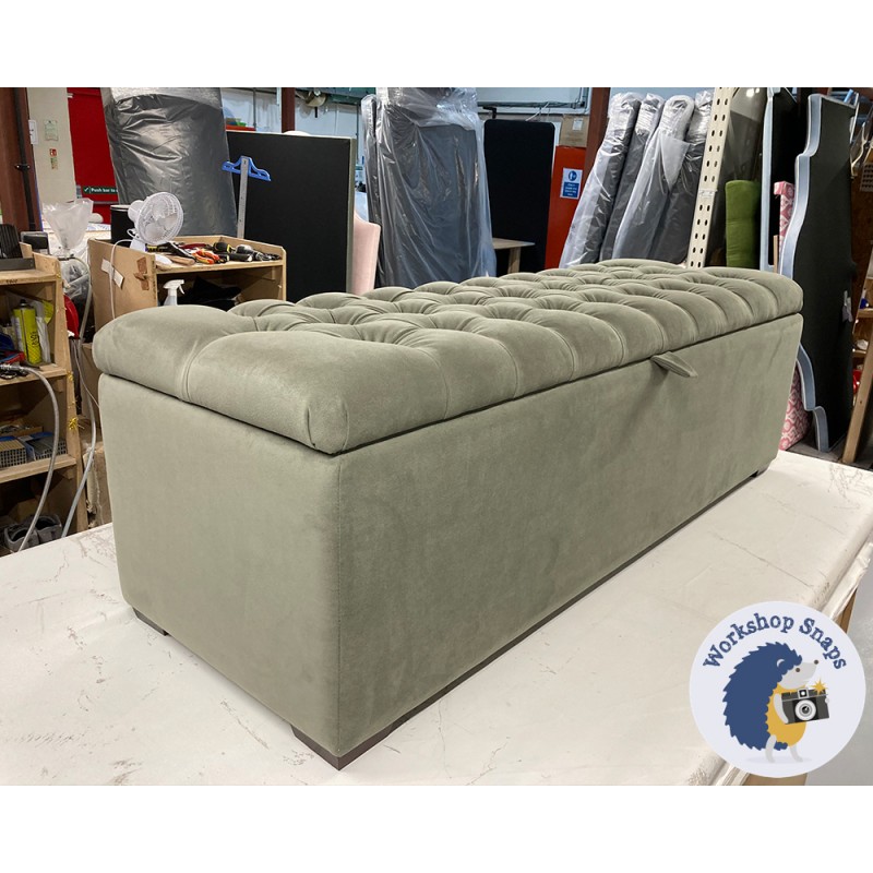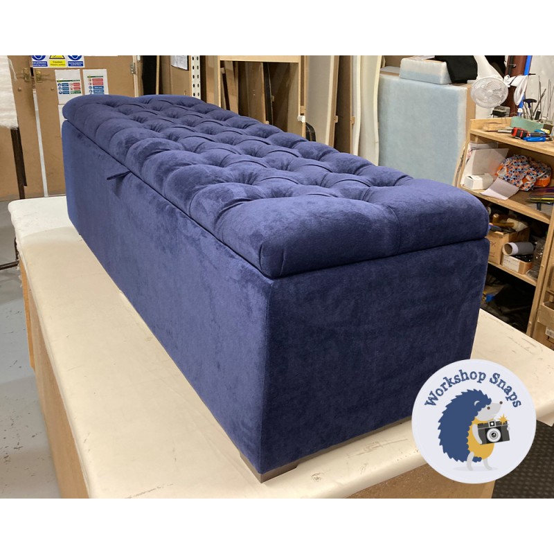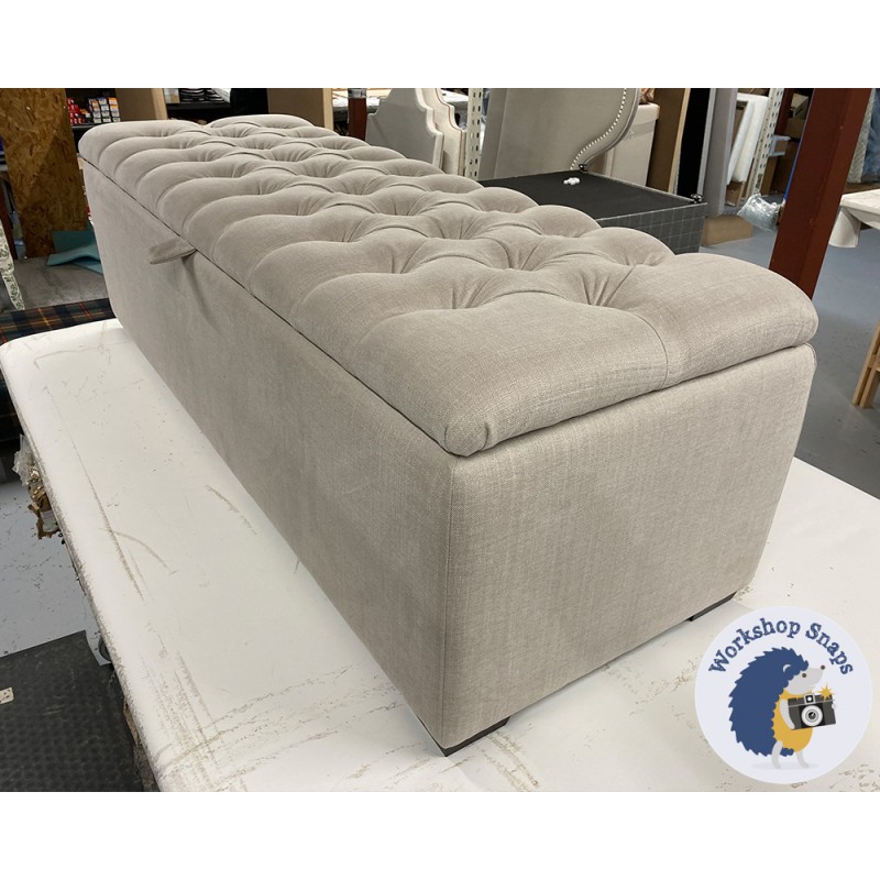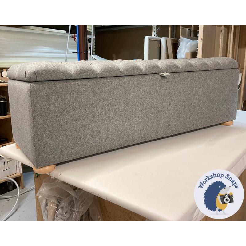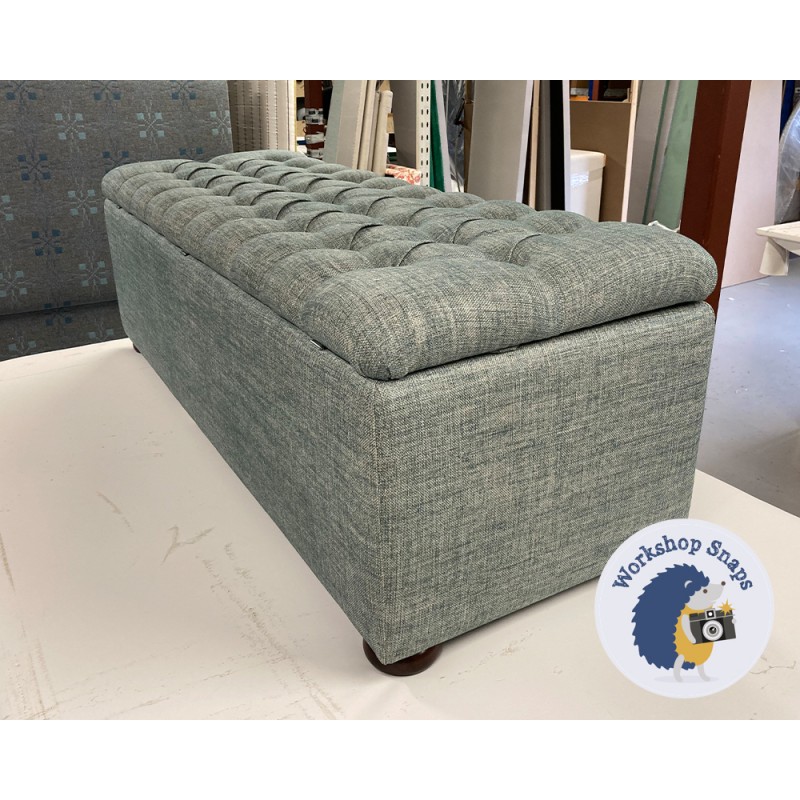 The Dean Deep Buttoned Lid Storage Ottoman 152 x 53cm (60 x 21") is handmade to order. Begin customising your large storage stool by selecting from our wide range of fabrics (or provide your own), and a variety of leg options.