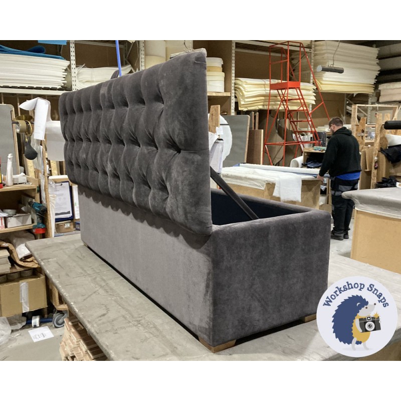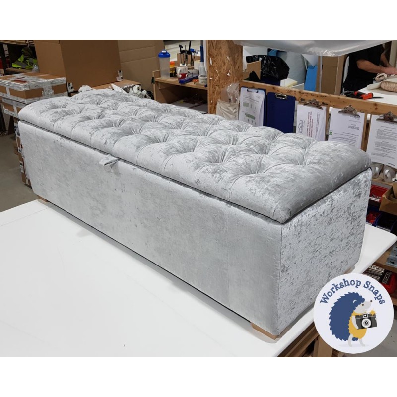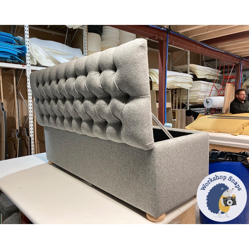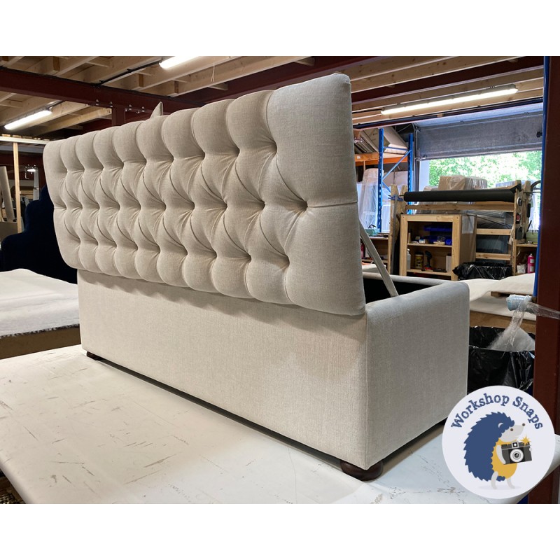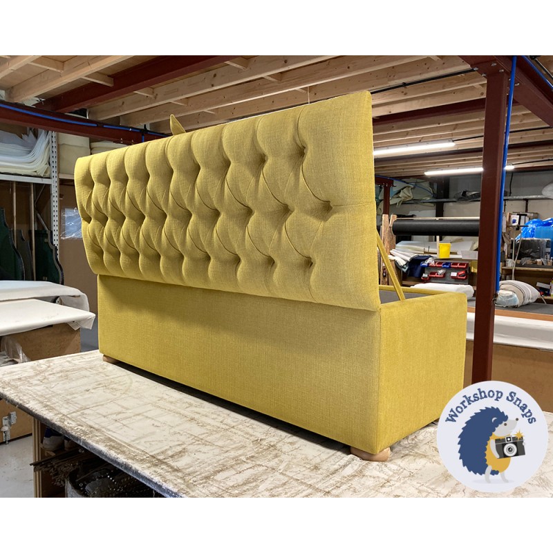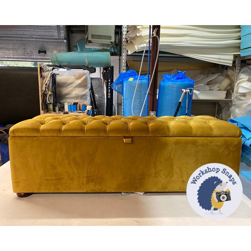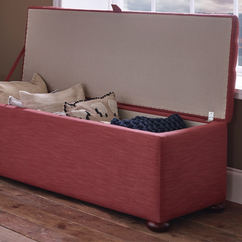 The Dean Deep Buttoned Lid Storage Ottoman 152 x 53cm (60 x 21") is handmade to order. Begin customising your large storage stool by selecting from our wide range of fabrics (or provide your own), and a variety of leg options.