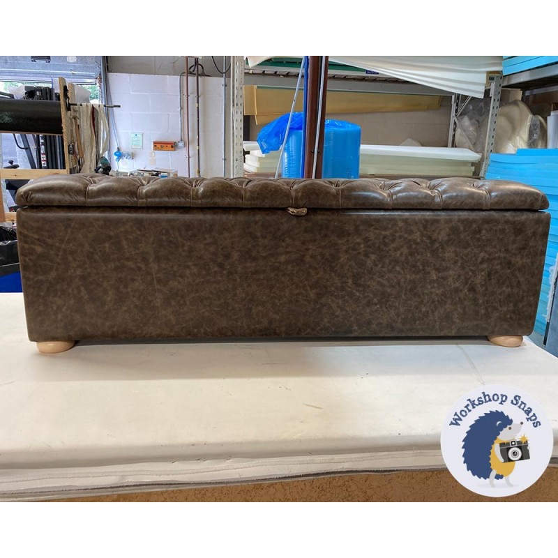 Dean Deep Buttoned Lid Storage Ottoman 152 x 53cm (60 x 21") Antique Matt Leather Chocolate - 1.5ins Light Bun Foot 230061