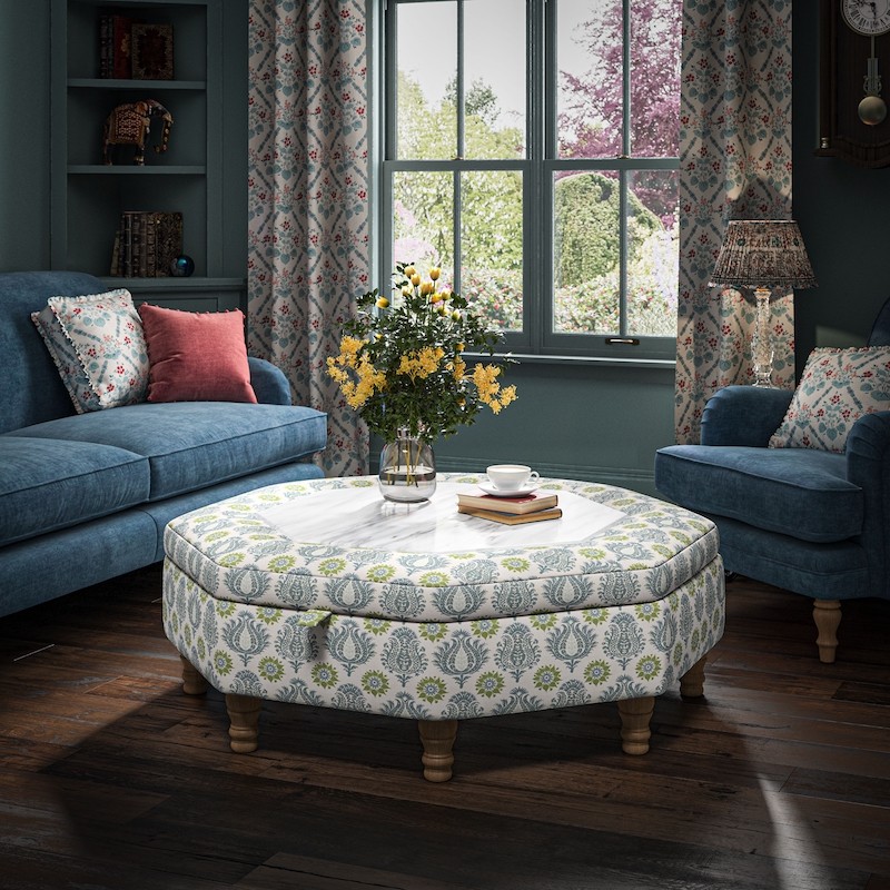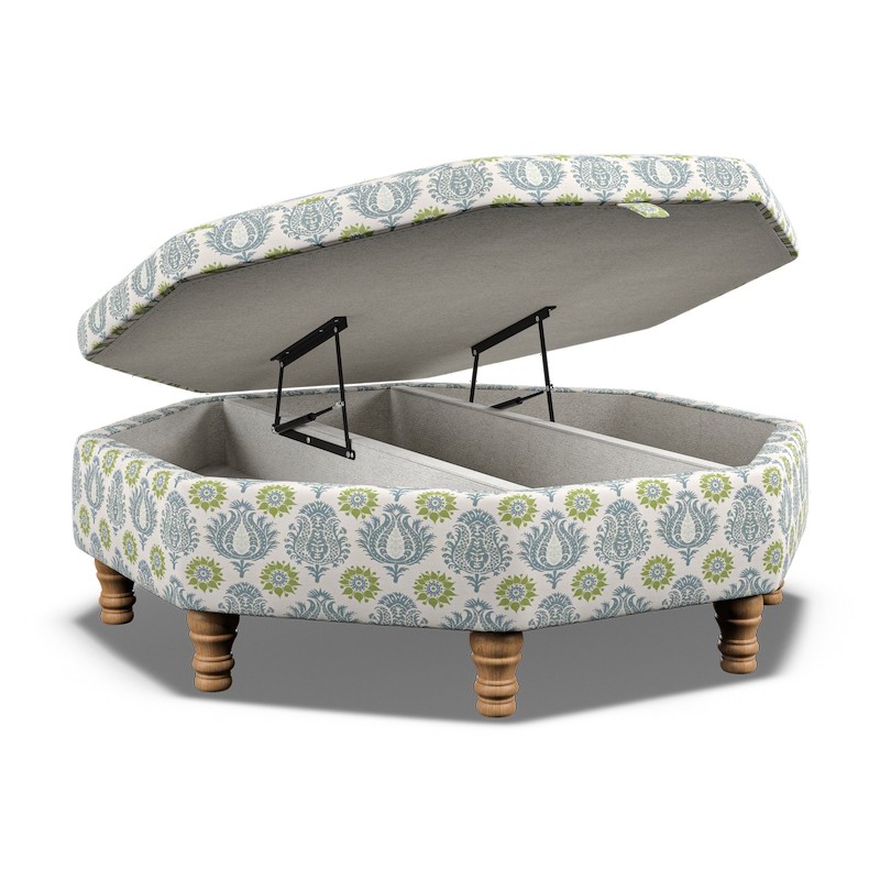 A beautifully upholstered eight-sided octagon storage ottoman that ‘does more’. The Delamere offers a host of options for you to bespoke and suit your home and lifestyle.