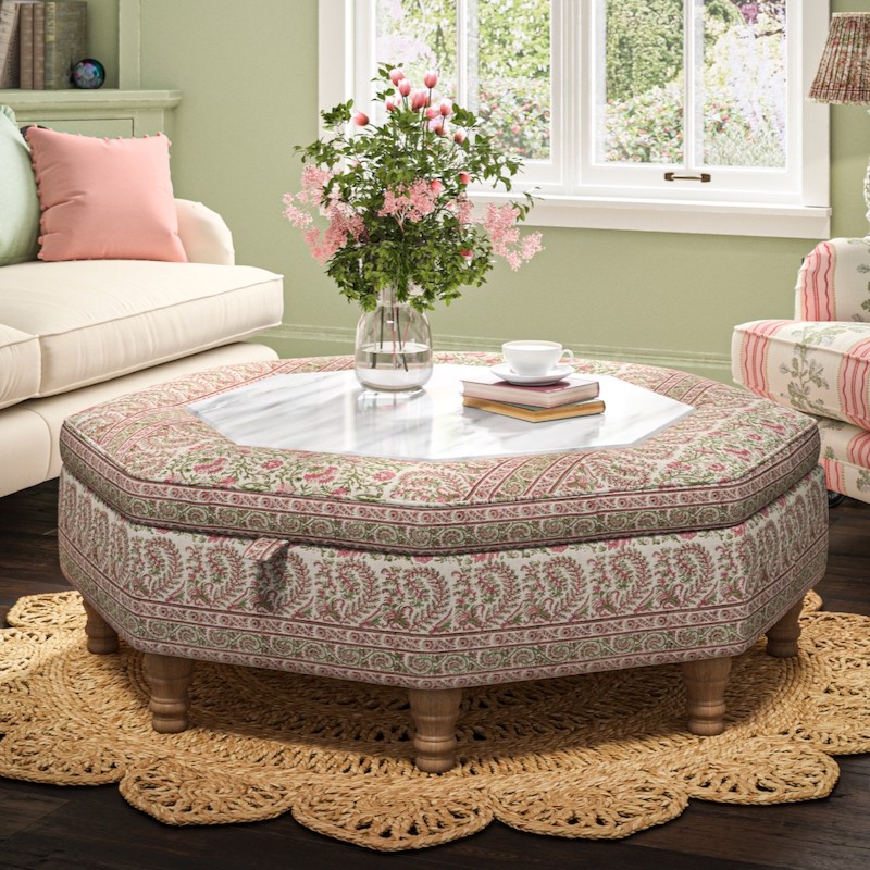 Delamere Octagonal Storage Ottoman 121cm (48") with Marble Inlay
