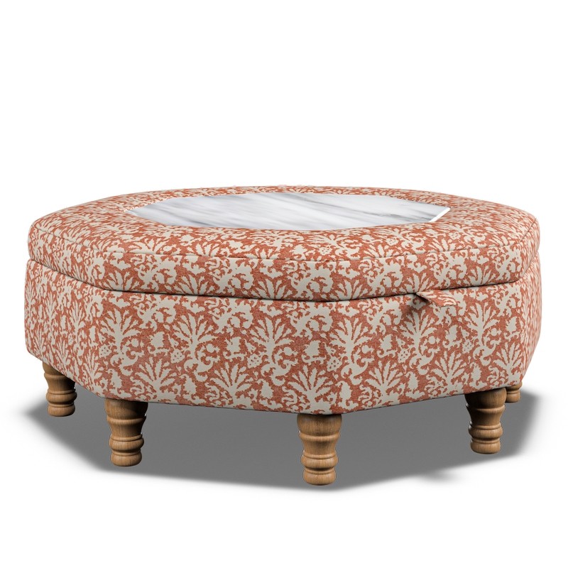 Delamere Octagonal Storage Ottoman 102cm (40") with Arabescato Italian Marble Inlay in Ian Sanderson Mallow Border Cortez - Top Edge Backtacked - 12.7cm (5") Turned Leg Oak - No Trim