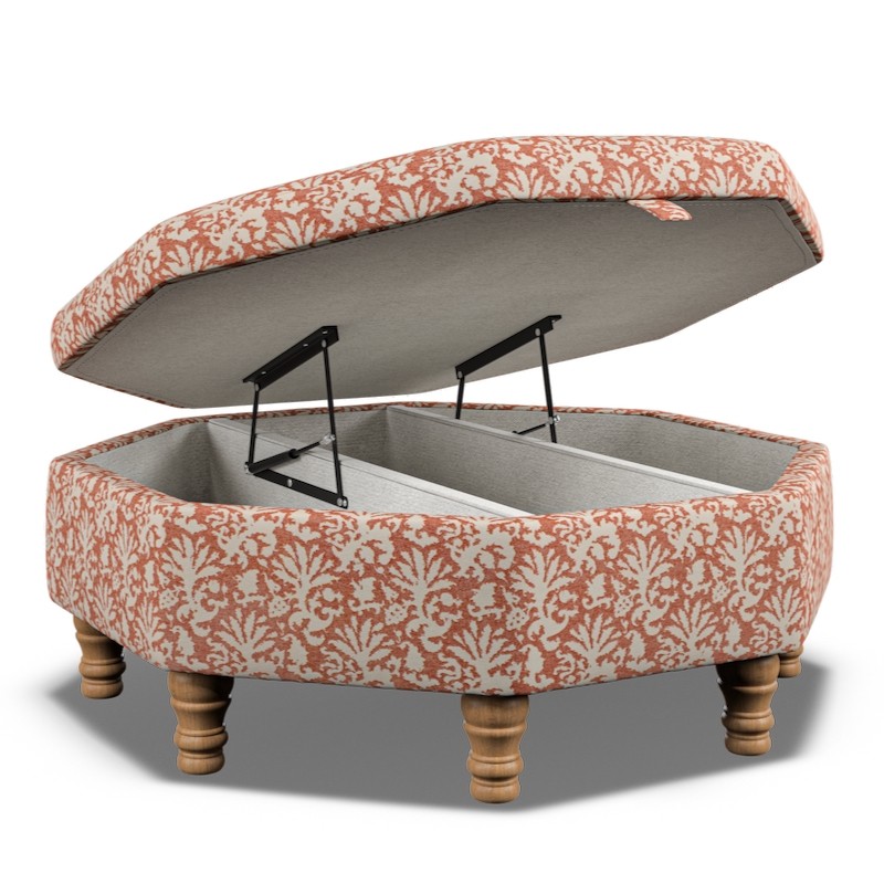 A beautifully upholstered eight-sided octagon storage ottoman that ‘does more’. The Delamere offers a host of options for you to bespoke and suit your home and lifestyle.