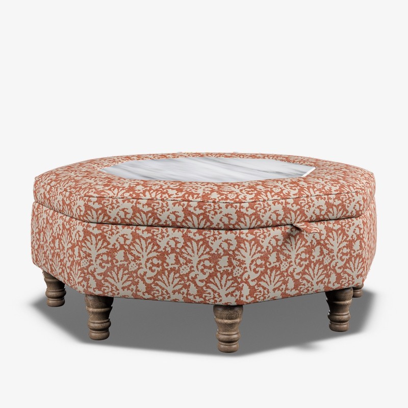 Delamere Octagonal Storage Ottoman 102cm (40") with Arabescato Italian Marble Inlay in Fermoie Aylsham - Top Edge Piped - 12.7cm (5") Turned Leg Oak - No Trim