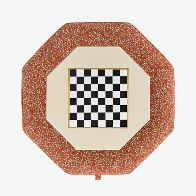 An elegant eight-sided octagonal ottoman with useful storage and chess board inlay.