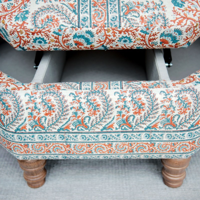 A beautifully upholstered eight-sided octagon storage ottoman that ‘does more’. The Delamere offers a host of options for you to bespoke and suit your home and lifestyle.