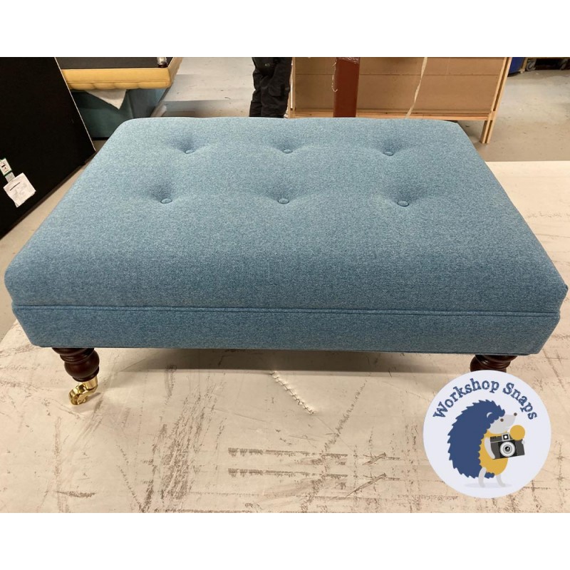 Fernworthy Shallow Buttoned Footstool with Border 81 x 61cm (32 x 24") Faux Wool Wedgwood - Piped Trim - 7ins Castor Mahogany Leg 7256