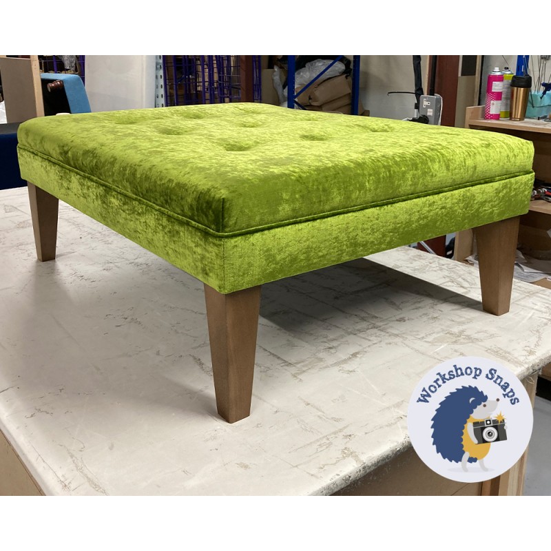 Fernworthy Shallow Buttoned Footstool with Border 102 x 76cm (40 x 30") Crushed Velvet Pistachio - 9ins Tapered Oak Leg 8048