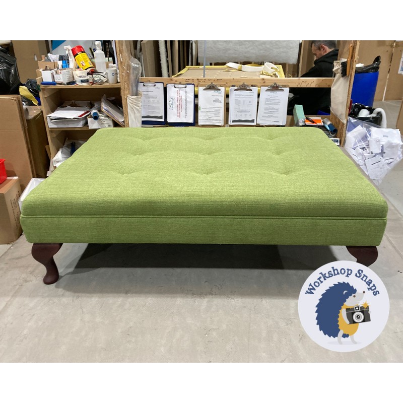 Fernworthy Shallow Buttoned Footstool with Border 102 x 76cm (40 x 30") Soft Weave Lime - 6" Queen Anne Mahogany Leg 5567