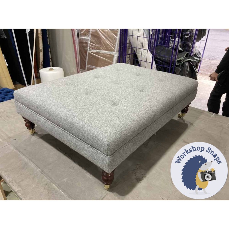 Fernworthy Shallow Buttoned Footstool with Border 102 x 76cm (40 x 30") Wool Plain Mid Grey - 7ins Castor Mahogany Leg 5902