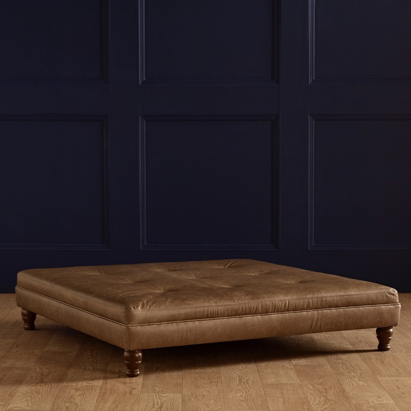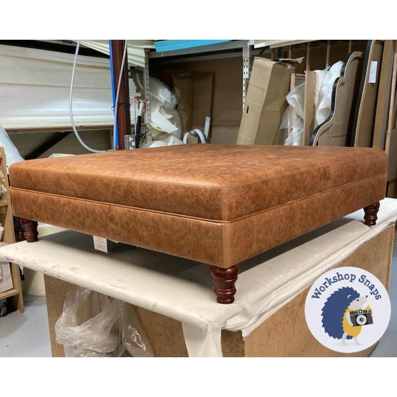 Fernworthy Shallow Buttoned Footstool with Border 122 x 122cm (48 x 48") Antique Matt Leather Walnut - Increased Pad Height 10ins - Border at 5ins - Customers Own Leg 7990