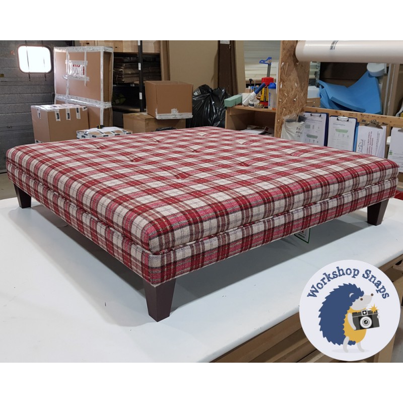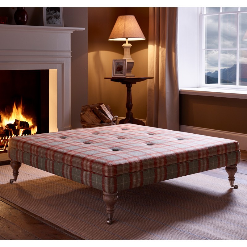 The Fernworthy Shallow Buttoned Ottoman with Border 122 x 122cm (48 x 48") is handmade to order. Begin customising your large square stool by selecting from our wide range of fabrics (or provide your own), and a variety of leg and trim options.
