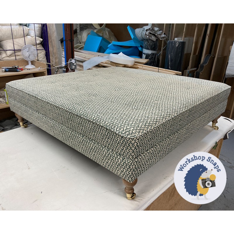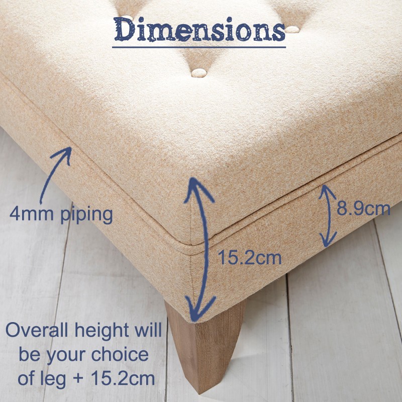 Fernworthy Shallow Buttoned Footstool with Border 122 x 122cm (48 x 48") COM Turnell & Gigon Aurelia - Additional Buttons - Pad Height Increase by 7cm - Border at 11cm - 6ins Castor Oak Leg 8633