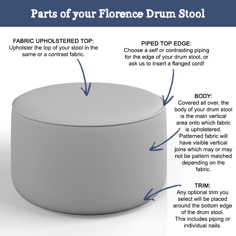 Anatomy of a Florence Upholstered Top with Piping Drum Stool