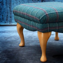This is a beautifully upholstered footstool with queen anne legs, at the perfect height to put your feet up whilst sitting on the Lyon Chair.