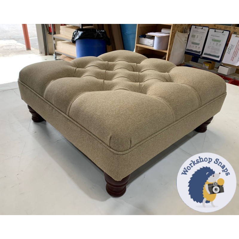 Glenmore Deep Buttoned Footstool with Border 61 x 61cm (24 x 24") Faux Wool Straw - 4ins Turned Mahogany Leg 4917