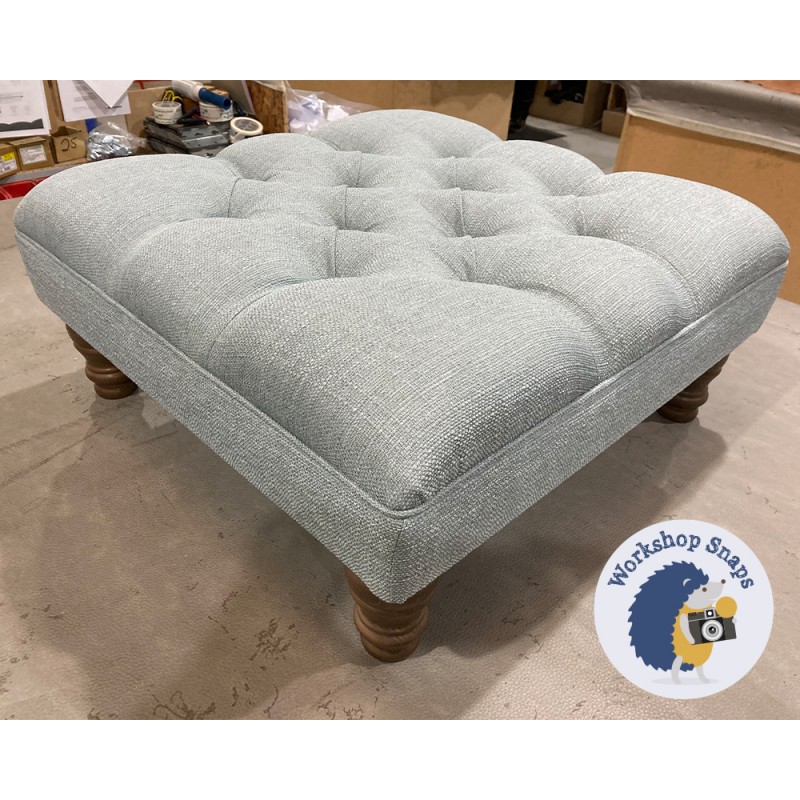 Glenmore Deep Buttoned Footstool with Border 61 x 61cm (24 x 24") Textured Weave Duck Egg - Self Piped - 5ins Turned Oak Leg 5719