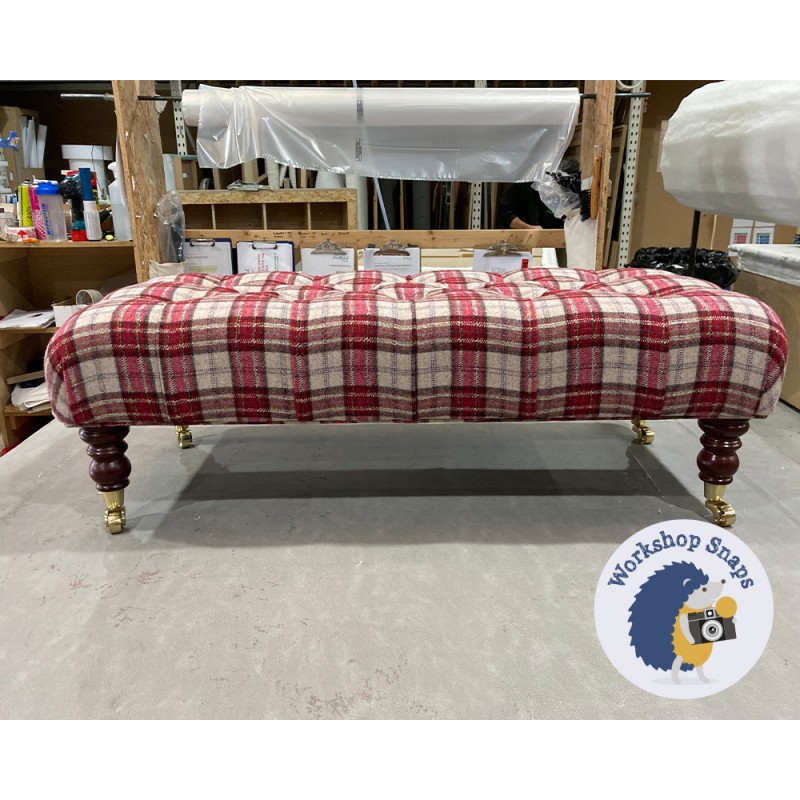 The Kinver Deep Buttoned Ottoman 102 x 46cm (40 x 18") is handmade to order. Begin customising your small bench stool below by selecting from our wide range of fabrics (or provide your own), and a variety of leg and trim options.
