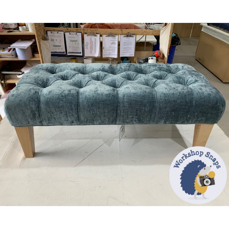 Kinver Deep Buttoned Footstool 102 x 46cm (40 x 18") Easycare Velvet Atlantic - Single Piped Trim - 9ins Tapered Oak Leg 8709