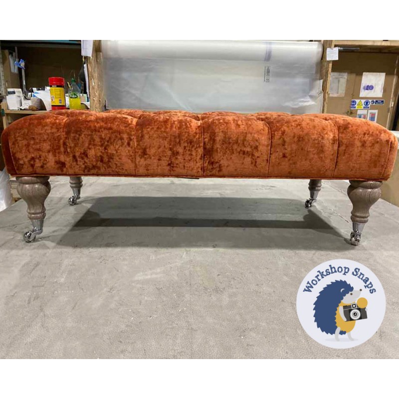 Kinver Deep Buttoned Footstool 102 x 46cm (40 x 18") Crushed Velvet Orange - Self Piped - 7.5ins Castor Washed Oak Leg - 5864