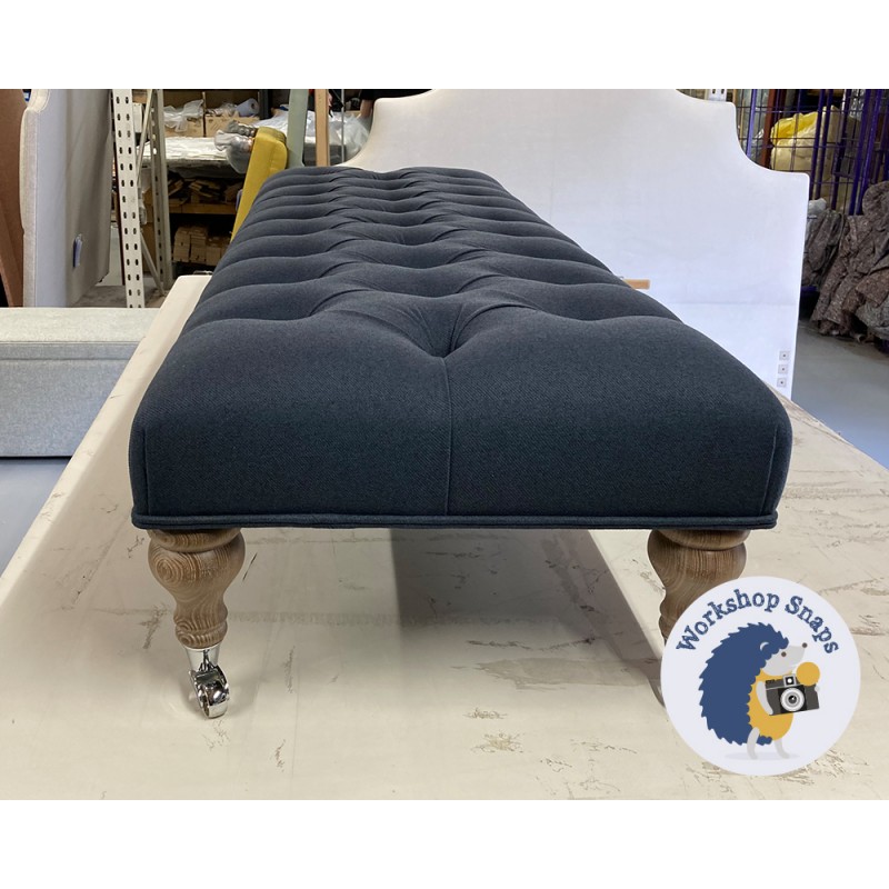 Kinver Deep Buttoned Footstool 152 x 53cm (60 x 21") Faux Wool Navy - Double Piped Trim - 7.5ins Washed Oak Castor Leg 8718