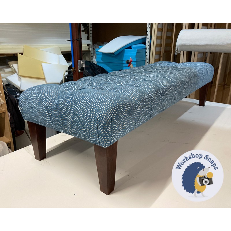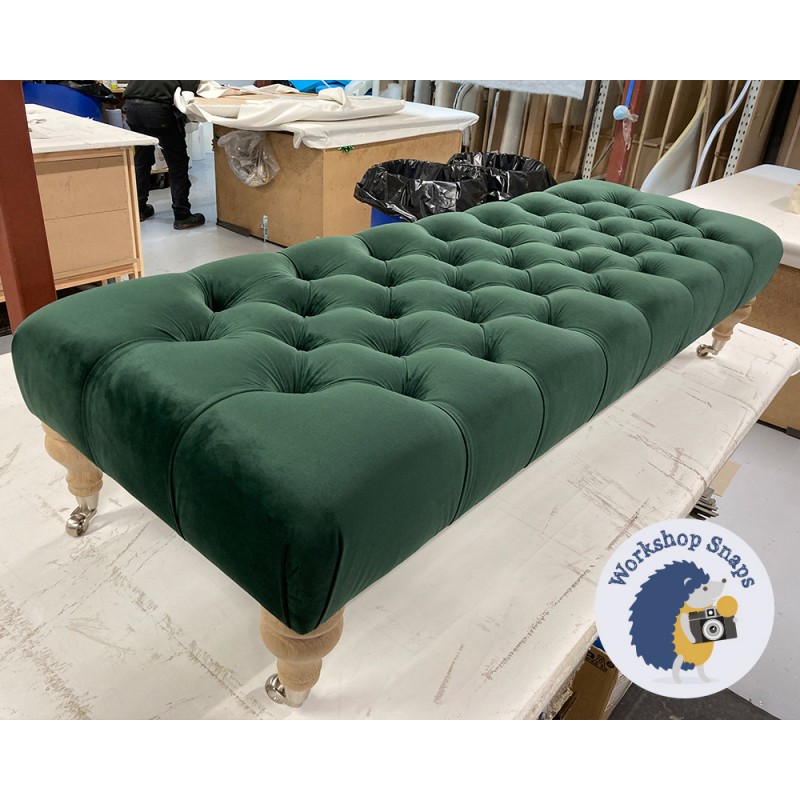 The Kinver Deep Buttoned Ottoman 152 x 53cm (60 x 21") is handmade to order. Begin customising your large bench stool by selecting from our wide range of fabrics (or provide your own), and a variety of leg and trim options.