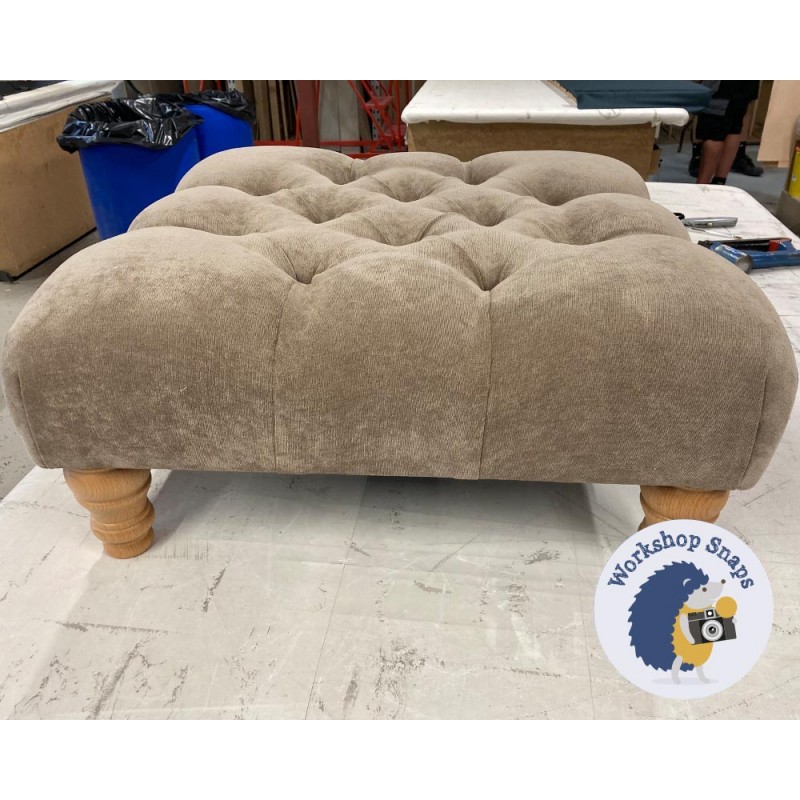 Kinver Deep Buttoned Footstool 61 x 61cm (24 x 24") House Velvet Mink - 5ins Turned Natural Leg 7435